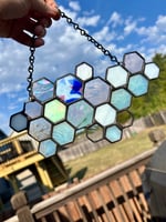 Stained Glass Honeycomb Suncatcher - Iridescent & Textured Glass Window Hanging Art Decor